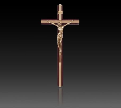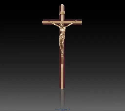 Krzyż wiszący 26 cm drewno/mosiądz