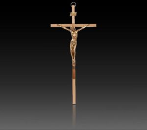 Krzyż wiszący o długości 26 cm i szerokości 12 cm.