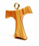 Niewielkich rozmiarów oryginalny krzyżyk TAU z drzewa oliwnego do zawieszenia na szyję. Estetycznie wykonany, wysokość 2 cm, szerokość 2 cm.