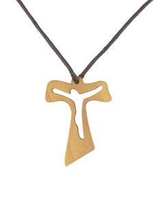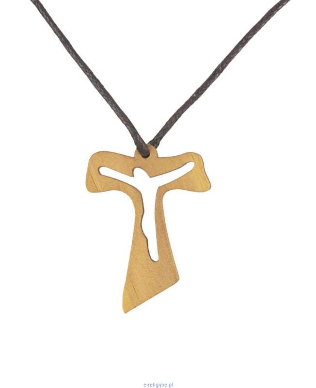 Krzyżyk TAU drewniany na szyję z wyciętym wizerunkiem Chrystusa WD163