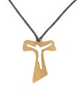 Drewniany krzyżyk do zawieszenia na szyję TAU. W komplecie rzemyk.