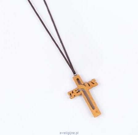 Krzyżyk drewniany na szyję 5 cm z rzemykiem