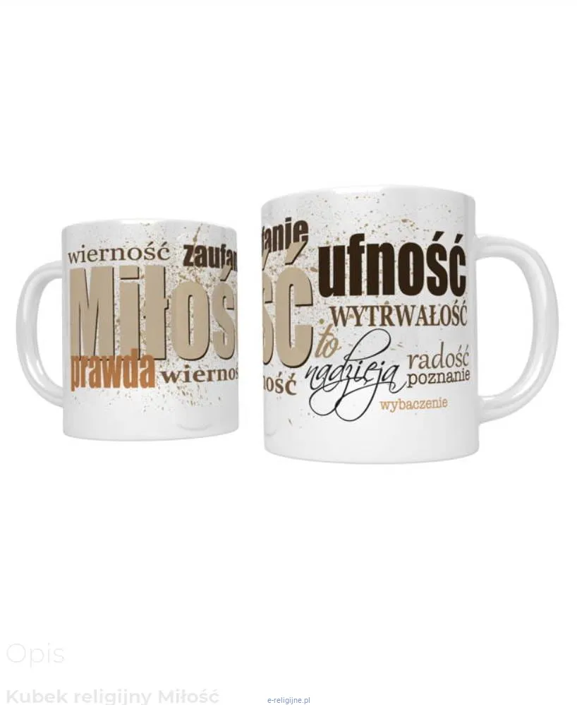 Najwyższej klasy ceramiczny kubek religijny ze słowami określającymi przymioty Miłości. Niech codziennie rano ten kubek przypomina Ci co jest najważniejsze w życiu.