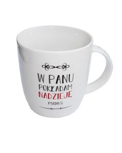 Chrześcijański kubek z cytatem z Psalmu 139: "W Panu pokładam nadzieję"