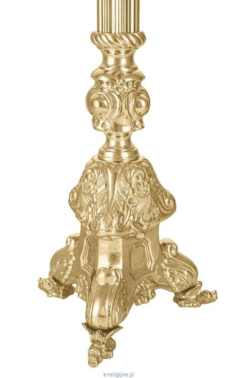 W przeciwieństwie do prostszych, klasycznych modeli, ten lichtarz jest przeznaczony do wnętrz, gdzie dominuje dynamika, przepych i bogactwo form. Każdy jego element – od fantazyjnie wygiętych nóżek po falistą krawędź profitki – został zaprojektowany, by przyciągać wzrok i budować podniosłą atmosferę liturgii.