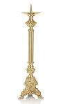 Lichtarz ołtarzowy barokowy 61 cm – mosiężny, bogato zdobiony w stylu rocaille P170