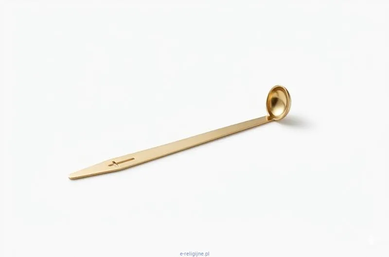 - Krzyż wycięty w trzonku — liturgiczny znak przeznaczenia, nie zwykła łyżeczka kuchenna