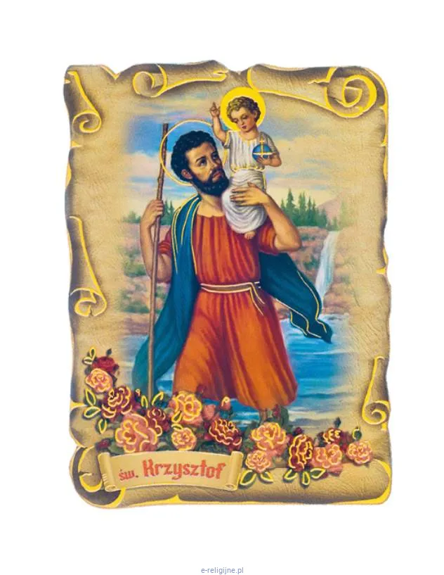 Religijny magnes z wizerunkiem świętego Krzysztofa.