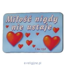 Magnes z tekstem religijnym "Miłość nigdy nie ustaje" 1Kor.13,8
