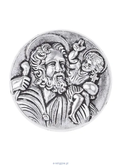 Metalowy magnes do samochodu ze świętym Krzysztofem.