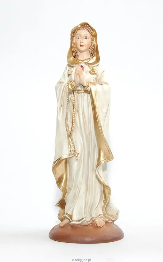 Wykonana z wysokiej jakości masy żywicznej, zachwyca precyzją detali. Każdy element, od delikatnych rysów twarzy Maryi po misterne fałdy Jej szaty, został oddany z niezwykłą starannością. Trwały materiał gwarantuje, że figurka będzie służyć jako piękne i inspirujące świadectwo wiary przez wiele lat.