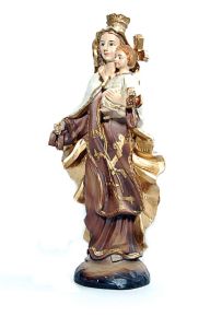Figurka Matki Bożej Szkaplerznej o wysokości 12 cm. Wspaniałe odwzorowanie szczegółów, żywa kolorystyka. Figurka wykonana z masy żywicznej.