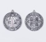 Duży, solidny medal św. Benedykta w kolorze srebra o średnicy ok. 4,5 cm i grubości ok. 2 mm. Do noszenia na szyi.