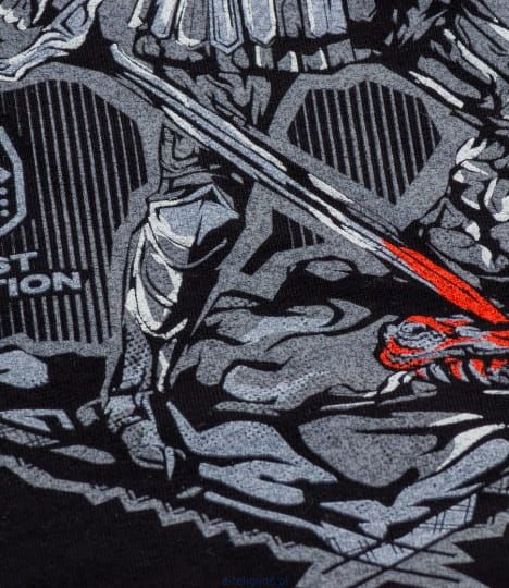 Wyprodukowana w Polsce koszulka z mięsistego, przyjemnego w dotyku materiału. Niespieralny i bardzo wytrzymały nadruk wykonany w technologii sitodruku podwójną warstwą farby plastizolowej.