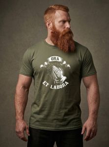 Męska koszulka chrześcijańska "Ora et labora" khaki