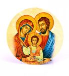 Okrągła religijna naklejka z wizerunkiem Świętej Rodziny. Zestaw 10 sztuk naklejek.
