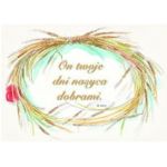 Naklejka posiada napis "On twoje dni nasyca dobrami".