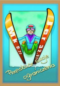 Naklejka posiada napis "Przeskocz swoje ograniczenia".