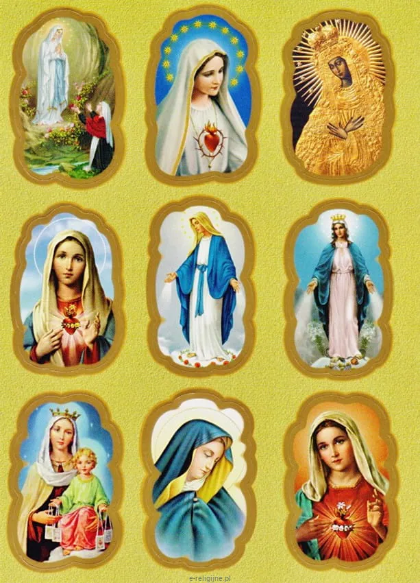 Zestaw naklejek religijnych z wizerunkami Maryi.