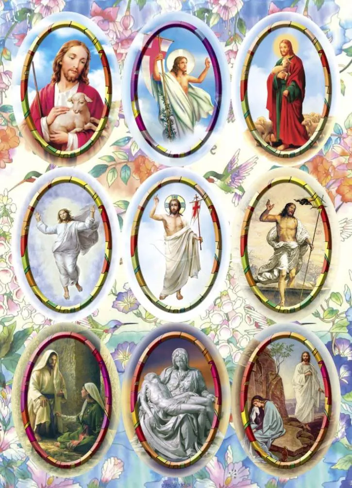 Naklejki religijne - zestaw 10 arkuszy naklejek o tematyce wielkanocnej - Chrystus Zmartwychwstały. Na każdym arkuszu 9 naklejek. Łącznie 90 naklejek .