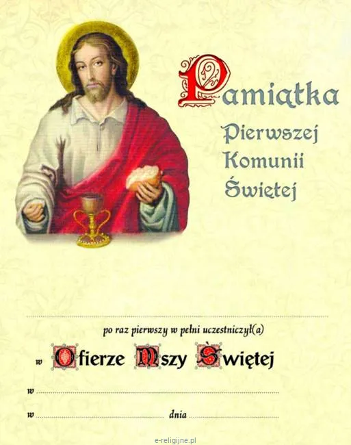 Obrazek dla dzieci - Pamiątka I Komunii Świętej. Do umieszczenia w ramce i rozdania podczas białego tygodnia lub w dniu uroczystości pierwszokomunijnej.