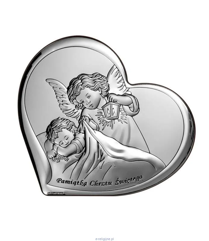 Wyprodukowany we Włoszech srebrny obrazek przestawiający Anioła Stróża - Pamiątka Chrztu Świętego.