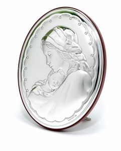 Obrazek srebrny Maryja z Dzieciątkiem - pamiątka chrztu św./ I Komunii św