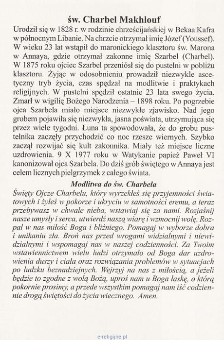 Obrazek ze św. Charbelem i modlitwą (7 x 10) - 100 sztuk