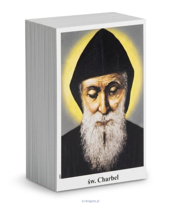 Obrazek ze św. Charbelem Makhlouf - maronickim świętym, żyjącym w XIX w. w Libanie. Obrazek kartonowy o wymiarach 7 x 10, na odwrocie notka biograficzna oraz modlitwa do św. Charbela. Zestaw obrazków 100 sztuk.
