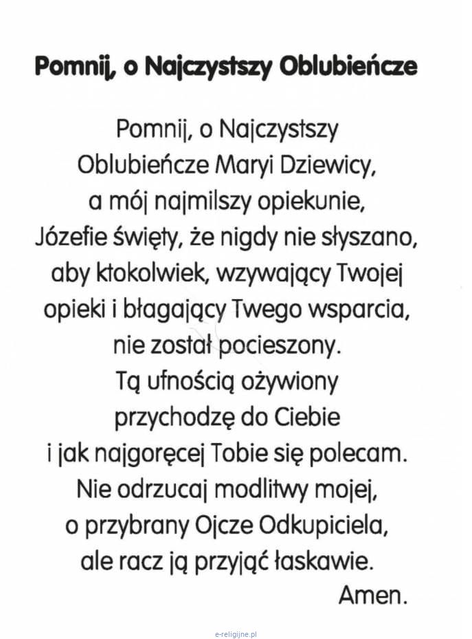 Obrazek ze św. Józefem i modlitwą "Pomnij o ... " 10 x 15 (paczka 50 sztuk)