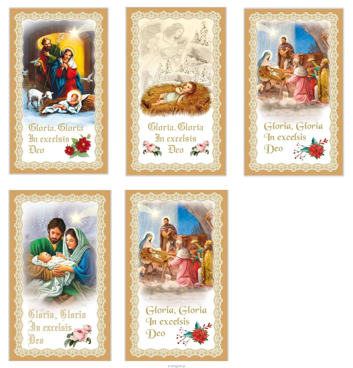 Obrazki kolędowe do rozdawania podczas wizyty duszpasterskiej. Zestaw 5 losowo dobranych wzorów spośród dostępnych w sprzedaży.