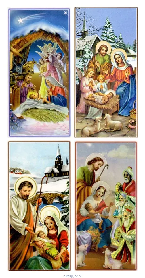 Atrakcyjny, podłużny obrazek kolędowy, który umożliwia jego późniejsze wykorzystanie jako zakładki.