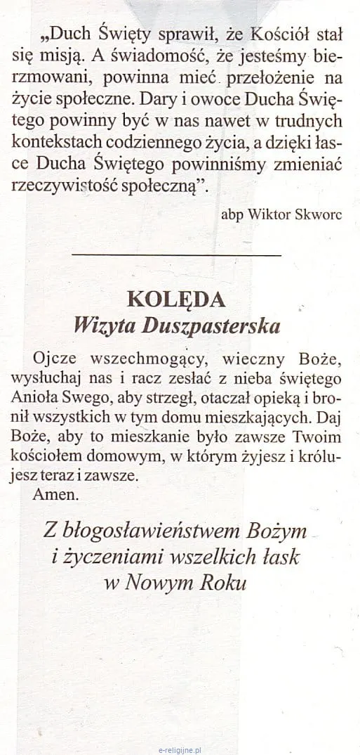 Na rewersie modlitwa, krótkie rozważanie dotyczące Ducha Świętego związane z rozpoczynającym się w I niedzielę Adwentu rokiem, którego hasło będzie brzmieć: "W mocy Bożego Ducha".