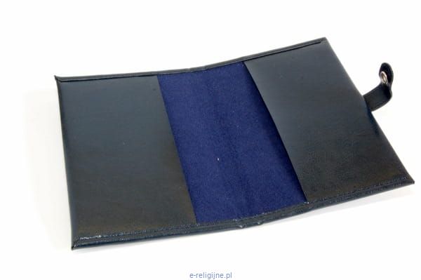 Okładka na Oremus ze skaju, zapinana na zatrzask w kolorze granatowym. Ułatwia korzystanie z czasopisma Księży Marianów, zapobiega szybkiemu niszczeniu się książeczki.