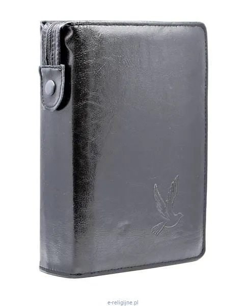Okładka uszyta na wymiar Pisma Świętego: 22,7 x 16 x 7 zamykana na zamek błyskawiczny i zatrzask. Na okładce wyciśnięta gołębica - symbol Ducha Świętego.