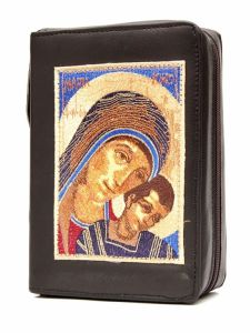Okładka na Pismo św. z ikoną haftowaną ze skóry - (CZRN) - format oazowy