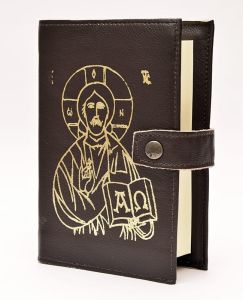 Okładka na Pismo św. z ikoną haftowaną ze skóry - (BRĄZOWA PANTOKRATOR) - format oazowy