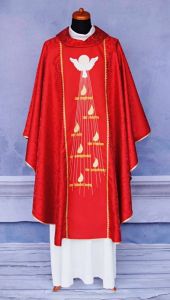 Ornat czerwony ze szczególnym przeznaczeniem do użycia podczas Uroczystości Zesłania Ducha Świętego lub podczas Sakramentu Bierzmowania.