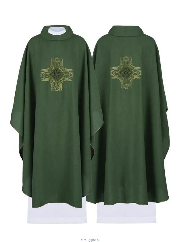 Elegancki stylowy, ale jednocześnie skromny ornat zielony używany w okresie zwykłym roku liturgicznego.