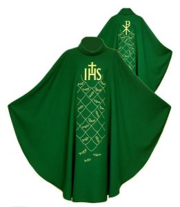 Ornat zielony haftowany komputerowo z symbolami Eucharystycznymi.