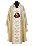 Złoty ornat zdobiony pasem z wizerunkiem kardynała Stefana Wyszyńskiego.