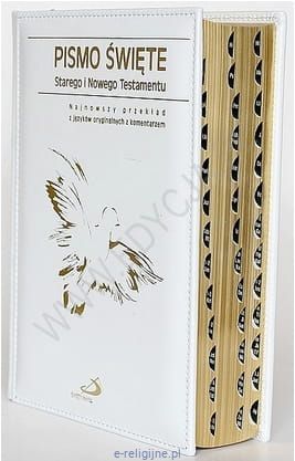 Pismo Święte ST i NT- format duży, etui, paginatory, złocone brzegi kartek, skóra naturalna biała