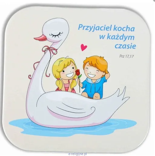 Podstawka korkowa z religijnym tekstem "Przyjaciel kocha w każdym czasie"