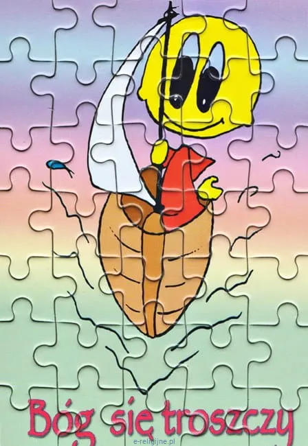 Religijne puzzle dla dzieci o tematyce religijnej z cytatem "Bóg się troszczy"