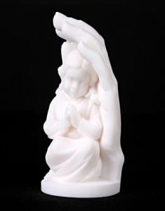 Figura Ręka Opatrzności - dziewczynka. Unikalna rzeźba przedstawiająca wykonana z alabastru syntetycznego - figury wykonane z tego materiału charakteryzują się dużą trwałością oraz śnieżnobiałym kolorem.