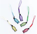 Religijna zawieszka do telefonu w kształcie chrześcijańskiego symbolu ryby i wpisanym w ten symbol imieniem Jezus. Zawieszka wykonana z gumy, jest lekka i poręczna. Wymiary 1,5 x 3 cm. Do wyboru kolory: żółty, niebieski, fioletowy, zielony i czerwony.