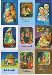 Religijne naklejki o tematyce Bożego Narodzenia. Zestaw 9 sztuk.