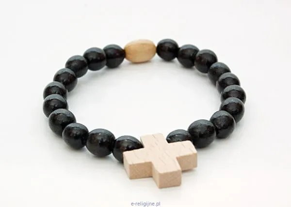 Drewniany różaniec bransoletka z koralikami w kolorze czarnym