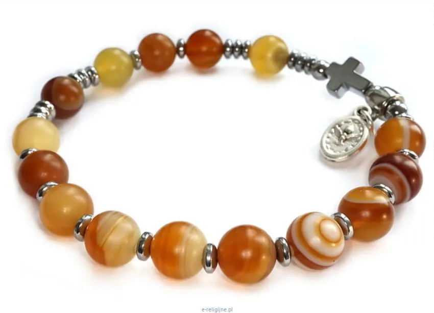 Różaniec bransoletka na rękę z kamieni szlachetnych: miodowy agat i hematyt 8663 [P10]