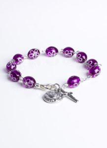 Różaniec bransoletka na rękę z krzyżykiem i różyczką BC667